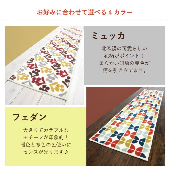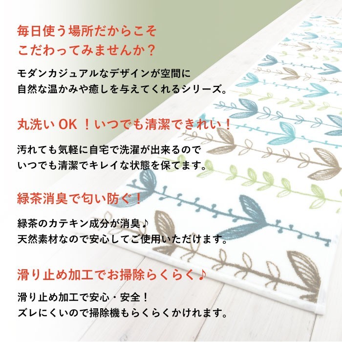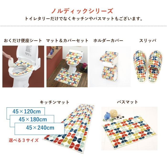 【メーカー取寄せ品】 ※北海道・沖縄・離島は送料が別途かかります。 弊社からお送りするメールにて必ずご確認下さい。 北欧風のデザインが魅力的なキッチンマット キッチン空間をお洒落で楽しくコーディネートできちゃう! 丸洗いOK!滑り止め加工付きで安心♪ ワイドサイズでキッチンを汚れから守ります。 【材質】アクリル100% 【サイズ】約45×240cm