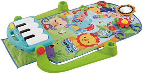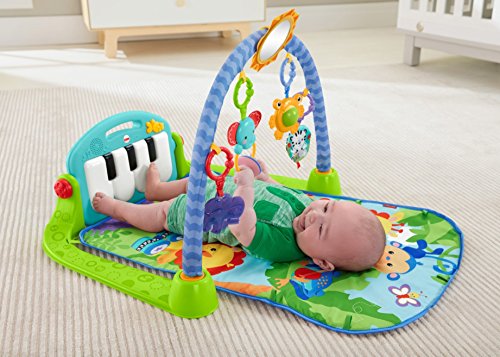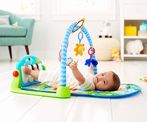 Baby kicks. Music plays. And that’s just the beginning. Movable toys on the overhead gym encourage baby to bat and grasp. Move the arch down for tummy-time play, or let baby sit and entertain you with a piano concert! And now with a removable piano, you can take the musical fun wherever you and baby go!