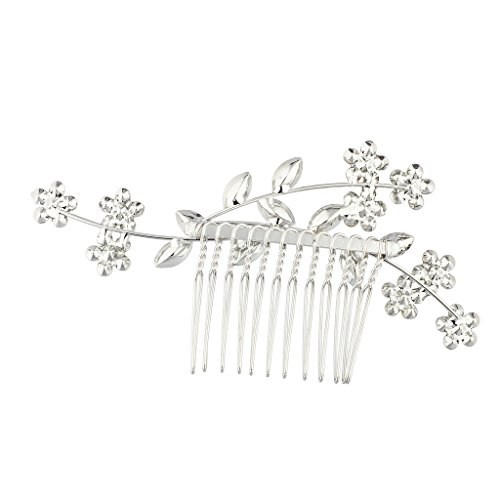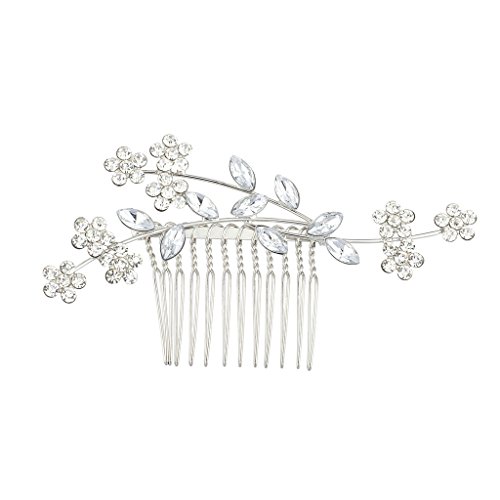 Lux Accessories Silvertone Bridal Flower Leaf Rhinestone Side Hair Comb