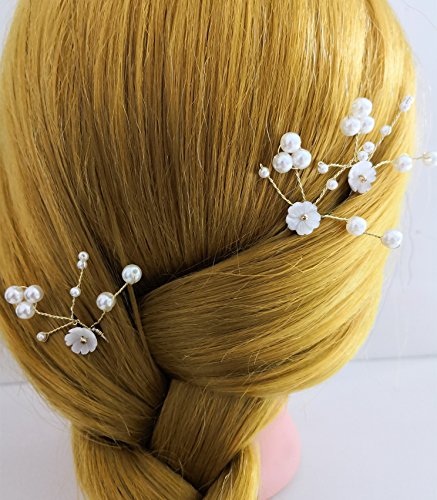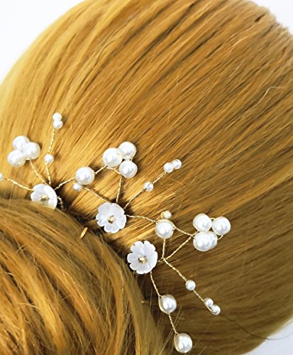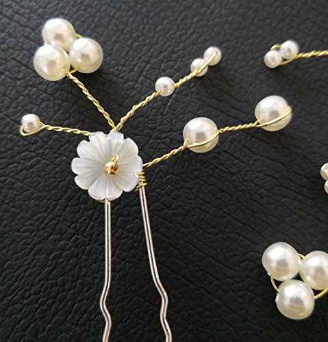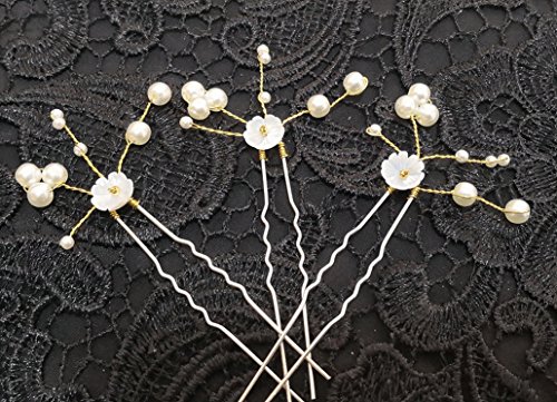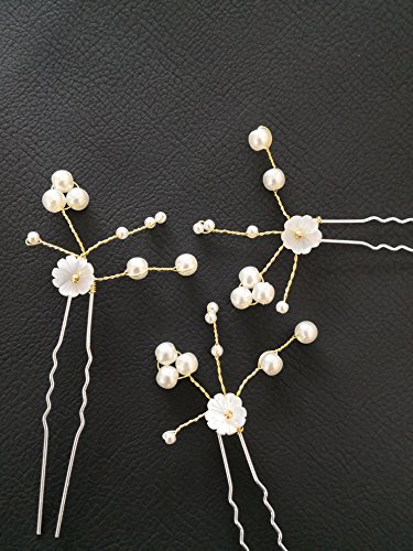 (FOH)/Styling Tools/Styling Accessories/DIRECT FROM USA/FOH Handmade Bridal Gold and Silver Pearl Shell Flower U-Shape Hair Pin for Wedding (Pack of 3)