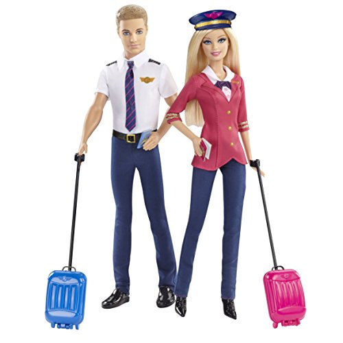 The skies are even friendlier when Barbie and Ken dolls are piloting the plane! These two dolls are prepared for take off dressed in snazzy airline uniforms. Ken is dashing with short sleeves and a tie and Barbie doll shows her signature style with a pink coat and bow tie. Barbie doll accessorizes with a classic pilot cap bearing an emblem and both have their passports and come with carry-on luggage (Barbie doll's is in pink, of course!). Bon voyage! Includes Barbie doll, Ken doll and themed accessories. Ages 3 and older.Feature