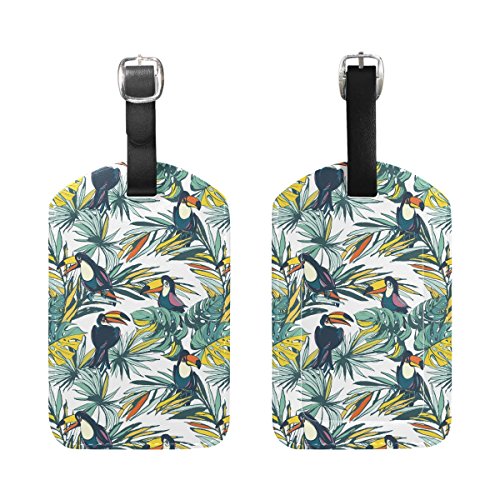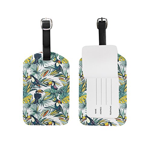 (YZGO)/Accessories/Luggage, Bags Travel/DIRECT FROM USA/YZGO Tropical Birds Floral Summer Jungle PU Leather Luggage Tags Bag Label Tag Travel Accessori...