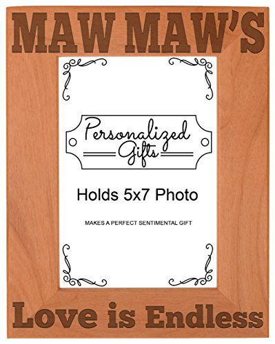 Mother's Day Gift Maw Maw's Love is Endless Natural Wood Engraved 5x7 Portrait Picture Frame Wood