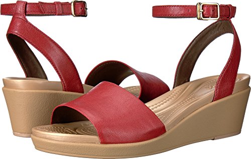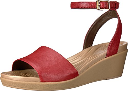 crocs Women's Leighann Anklestrap Lthr Wedge Sandal