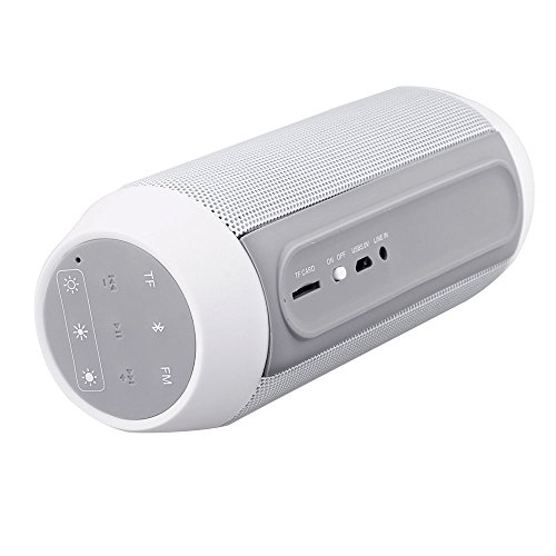 Feature : Universally compatible with most bluetooth devices such as iPhone/iPad/iPod, Samsung galaxy S4/S3/Note 2, other Android smartphones, tablet PCs, etc. / Can work as a wired speaker without bluetooth function by using the 3.5mm auxiliary cord.Built-in microphone enables you to answer a handsfree call and realize last number redial. / Convenient buttons for volume adjustment, music and hands-free call control.Wireless bluetooth connection, keeping you from the hassle of tangled wires. / Offers a wireless connection range of 10 meters (33 feet).Powered by built-in rechargeable battery via mini USB port.Superb stereo sound quality and excellent bass. / Four blinking shining colors make the music time cool.TF card supported.FM function supported.