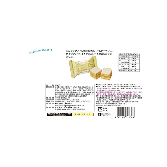 원본상품명: ブルボン ふんわりチョコバムホワイト 136g×12袋