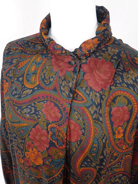 Ladies ブランド- カラー紺ベース メール便不可 コンディション★★★ 素材レーヨン 表記サイズ8 実寸サイズ 着丈 64.5 cm 身幅 50 cm 肩幅 43 cm 袖丈 57.5 cm ※ウエスト・ヒップ以外は平置き採寸