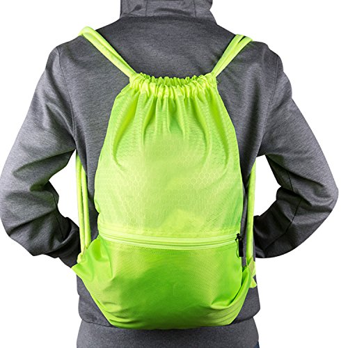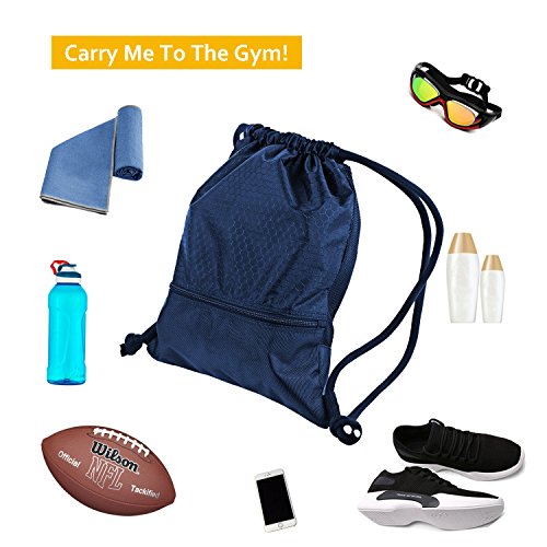 -. Feature : LARGE CAPACITY - L Size BIG enough to fit a standard size basketball and M size NOT.L SIZE(50CM*40CM/19.6inch*15.7inch);M SIZE(45CM*35CM/17.7inch*13.7inch) Made of 420D nylon. / ADJUSTABLE SOFT SHOULDER STRAPES - 2 straps each side, soft and comfortable, will never cut into your shoulders. String length can be adjusted through the knots. / FRONT & BACK - Waterproof front side,good for Swimming not afraid of rain anymore. Two-layer mesh back,NET visible design,soft and breathable reduce the pressure of carrying, ventilate mesh make gym things don't get too smelly. / BIG OUTSIDE ZIPPER POCKETS & SECRET SMALL POCKET INSIDE- External large pocket (7*16inch) with heavy Metal zipper, small Pocket inside(6*8inch) for valuables. / IDEAL STORAGE - Best drawstring backpacks for play basketball, gym, college, work or traveling. You can use it for storage of your sports shoes like soccer, football, baseball, softball and basketball, or place your workout clothes like shirts, pants or any other athletic clothes. You can even put your gadgets, paperwork, school books and other stuff. It is made of light weight and durable material so you can easily carry it on your back or bring by hand.
