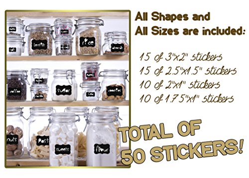 EVERYTHING YOU NEED, AT YOUR FINGERTIPS - Organize, decorate, and label to your hearts' content with 50 high quality, reusable label stickers and a BONUS erasable liquid chalk marker. Plus, your bundle includes labels in 4 different sizes: (15) 3" x 2", (15) 2.5" x 1.5", (10) 2" x 1", and (10) 1.75" x 1", so you're sure to find the right sticker for the job, every time.