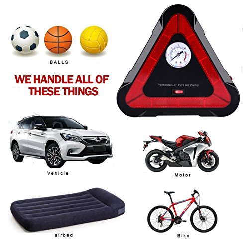 MULTI-PURPOSE: This tire pump comes with 3 different inflatable adapters, which makes it perfect for cars, bikes, motorcycles, RV, SUV, ATV and truck. Also, sports equipment and inflatables adaptors included.