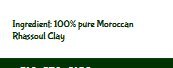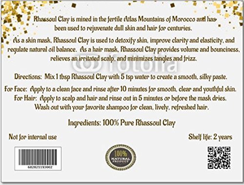 Rhassoul Clay Rhassoul Clay is an exceptional clay with multipurpose assets. It is mined in the fertile Atlas Mountains of Morocco and has been used for over 12 centuries by population in North Africa, Southern Europe and Middle East. Benefits: Rhassoul Clay's most impressive properties in skin improvement are its capacity of absorption due to its high level of ions exchange. Studies have shown that it is reputed to reduce dryness and flakiness, improve skin clarity and elasticity. It is rich in magnesium, Silica, potassium and calcium. Application: It is used in many professional applications in spas and it aids in rejuvenation, detoxification and toning of the skin. It can be used in soaps, shampoos, facial hair and body masks and skin conditioners.Feature