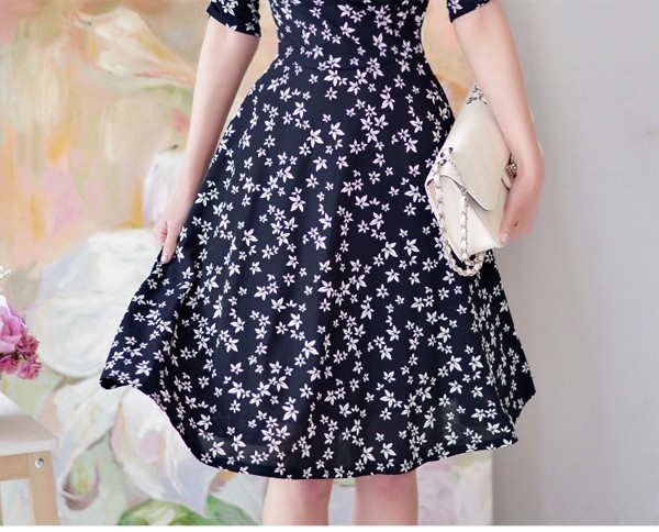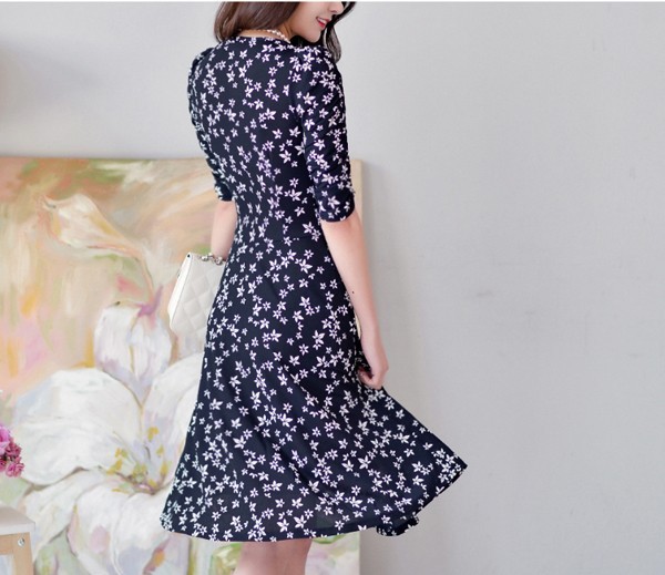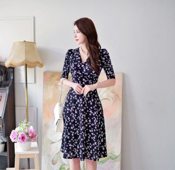 商品名:ワンピース フレアワンピース 膝丈 花柄