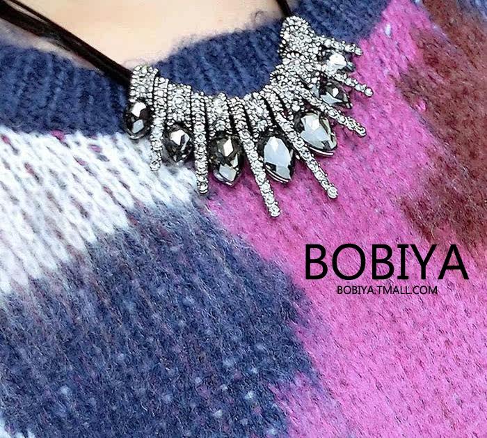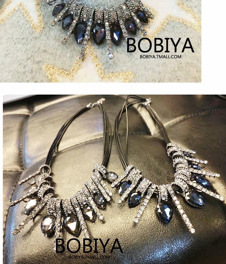 满钻水滴形流苏毛衣链!灰色和宝蓝二色!防过敏多层皮绳链条!非常好看!百搭耐看!怎么配都绝美!