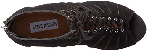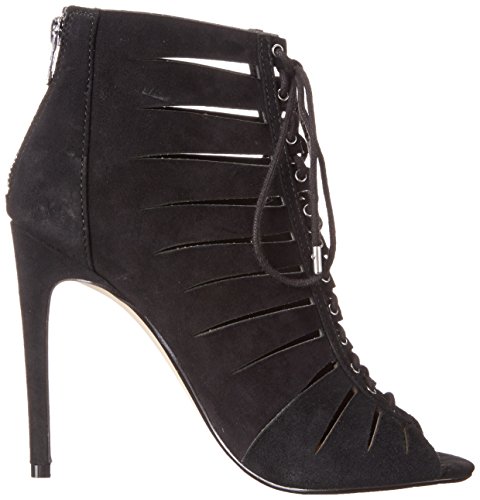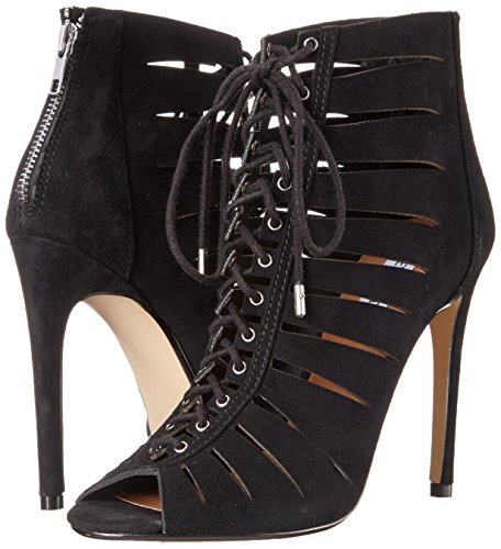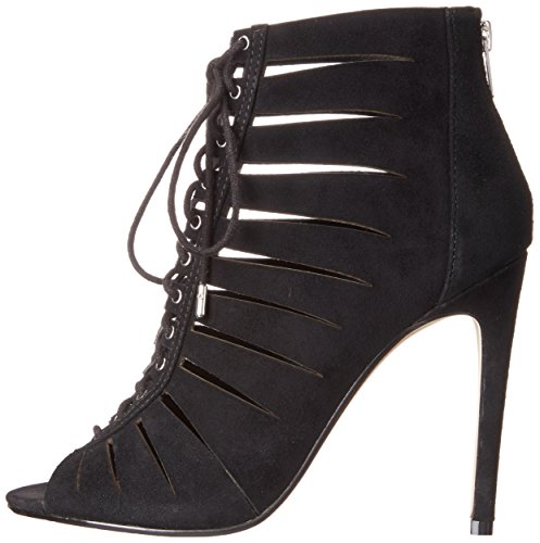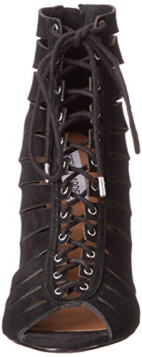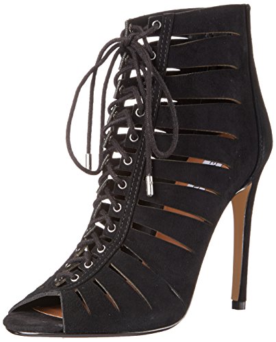 Peep-toe bootie-sandal featuring lace-up vamp with slim side cutouts
