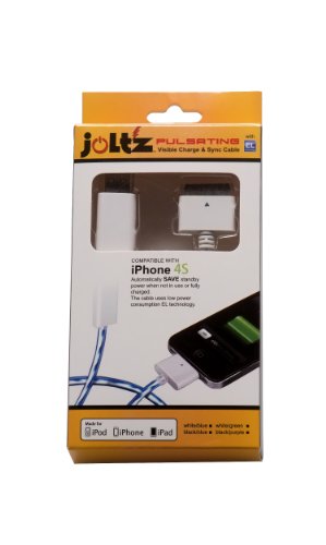 Joltz Power Banks LCW4SBL Pulsating Light USB Charge Sync Cable for iPhone 4S, iPad, iPod nano and iPod classic - White Cable Blue Light