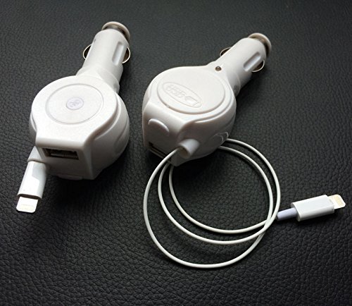 -. Feature : Car charger plugs into your car's cigarette lighter and charges your phone while you're driving. / Intelligent IC chip recognizes a fully charged battery and automatically switches to saver mode to prevent overcharging and short circuit. / Extra USB Connection on back allows you to charge a second device at the same time. / Button for Quick Recoil, no more tangled mess, Output Voltage: 2.1A At 5V DC / Compatible:iphone 6 plus,iphone 6,iphone 5s,iphone 5c,iphone 5,ipad air,ipad mini,ipad 4,ipod touch