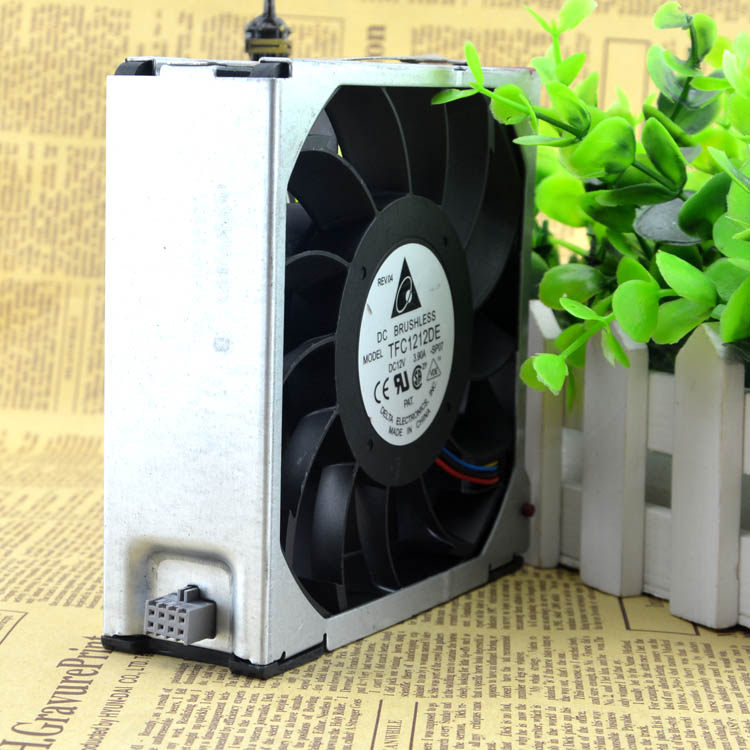 MODEL: TFC1212DE Size: 120 × 120 × 38MM Voltage: DC12V Current: Nominal 3.90A (12V rated current of 2.98A, Delta fan vacuity more serious, understand goods friends all know that 12038 fans can reach such a large current is this, no other comparable models with him.) Wind: 252.85CFM (7.16m3 / min) Pressure: 1.412 in H2O (351.7 Pa) Weight: 0.351kg Noise: 66.5 dB (A) Power: 57.6W Speed: Speed PWM motherboard support Speed: Supports Interface: Motherboard 4P + 4D dual power big power connector Cable length: 35cm The number of revolutions: 12V at 5500 RPM Fan Frame: injection molding, PBT + 30% glass fiber + VO grade flame retardant; Blade: plastic injection molding, PBT + 30% glass fiber + VO grade flame retardant; Fan rotation: counterclockwise as viewed from the fan; Operating temperature: -10 degrees Celsius to +70 degrees Celsius; Storage temperature: -40 degrees Celsius to +70 degrees Celsius; Bearings: precision ball bearings; Power range: plus or minus 15% of the rated power; Insulation resistance: greater than 500 megohms; Withstanding voltage: Meeting the leakage current 0.5mA 500V / 1 min; Working life: ambient temperature of 25 degrees 80,000 hours.