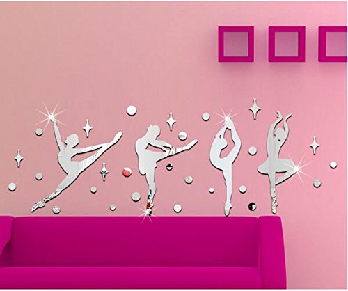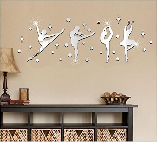3D Stereoscopic Children's Room Dance Studio Mirror Wall Stickers Nursery Decor Mirrors (Silver)