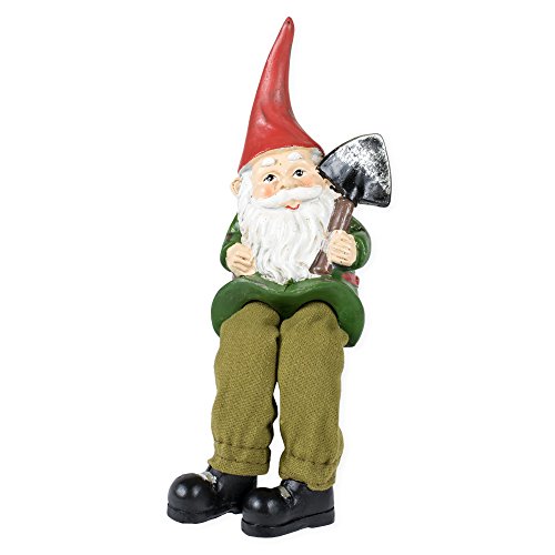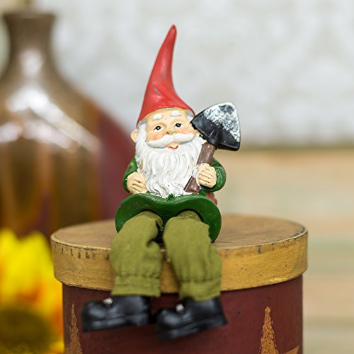 Garden Gnome with Spade 6 Inch Resin Dangling Legs Shelf Sitter Figurine