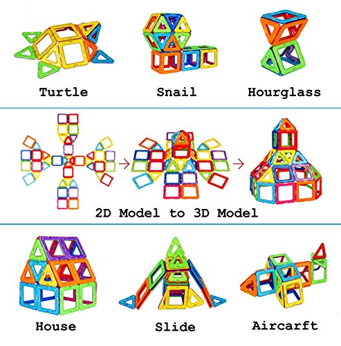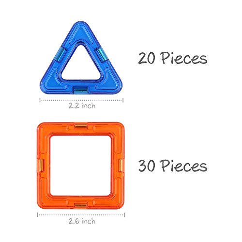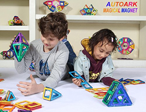 -. Feature : ABS plastic magnets,conform to CE,ASTM and EN74 / Set includes 50 building pieces:20 triangles and 30 squares,each magnetic tile block has different colors on each side-fun for stacking.Creates your own designs or try one of the design patterns in the included guidebook,the set also comes with an exquisite gift box packaging / This works well for educational purposes as well as fun,Attractive colorful Geometric Shapes to help children acquire strong sense of color,fun and easy to build anything they would like,Perfect for both solo and cooperative play / Tiles are compatible with Autoark 30 Pieces building blocks and other popular magnetic building toys,made with extra strong and high quality magnetics and child-safe curved corners / You will be 100% satisfied with our product!Autoark is so confident you'll love our products,if you're not completely satisfied you'll be offered a prompt refund or replacement,no questions asked