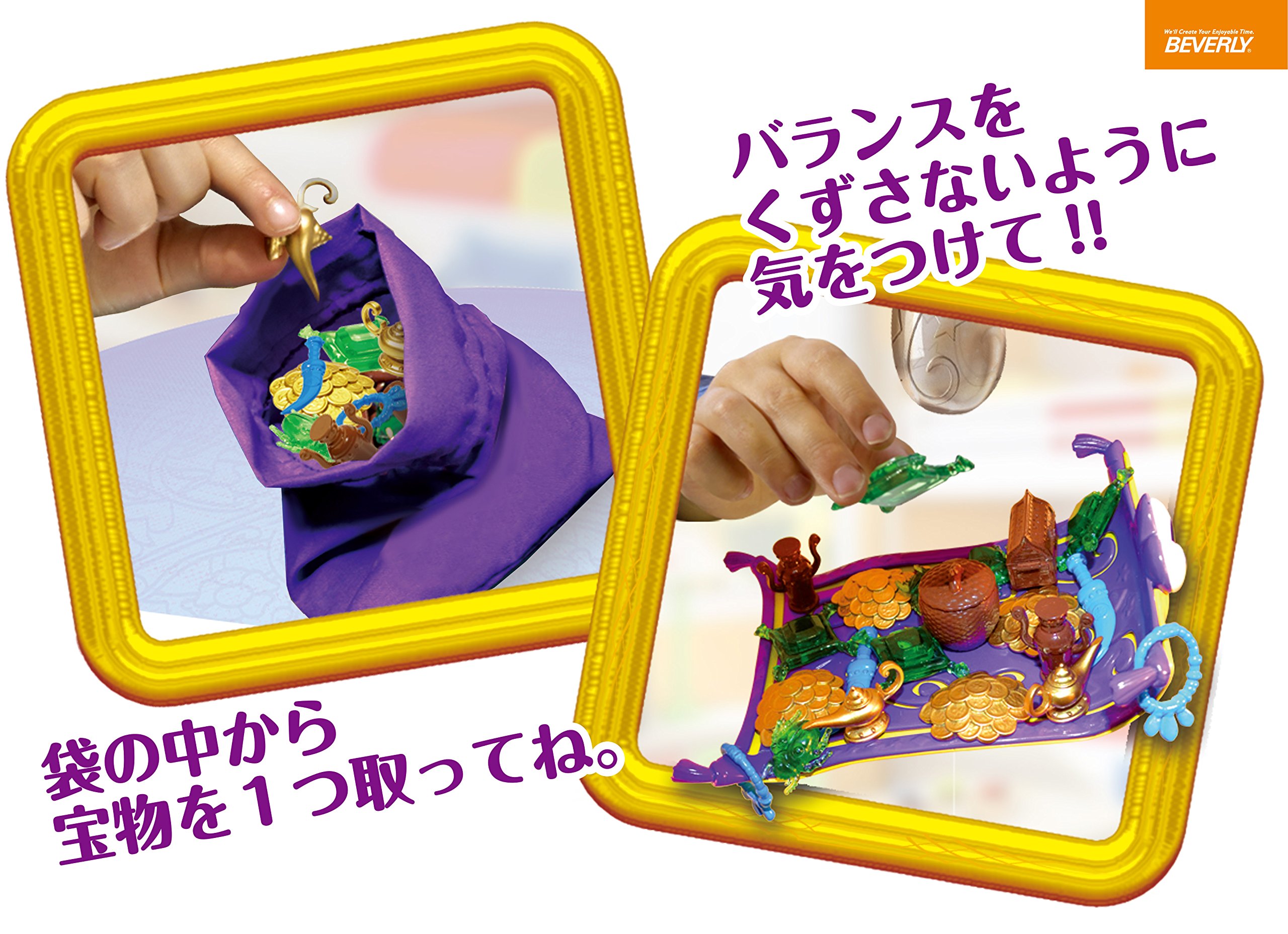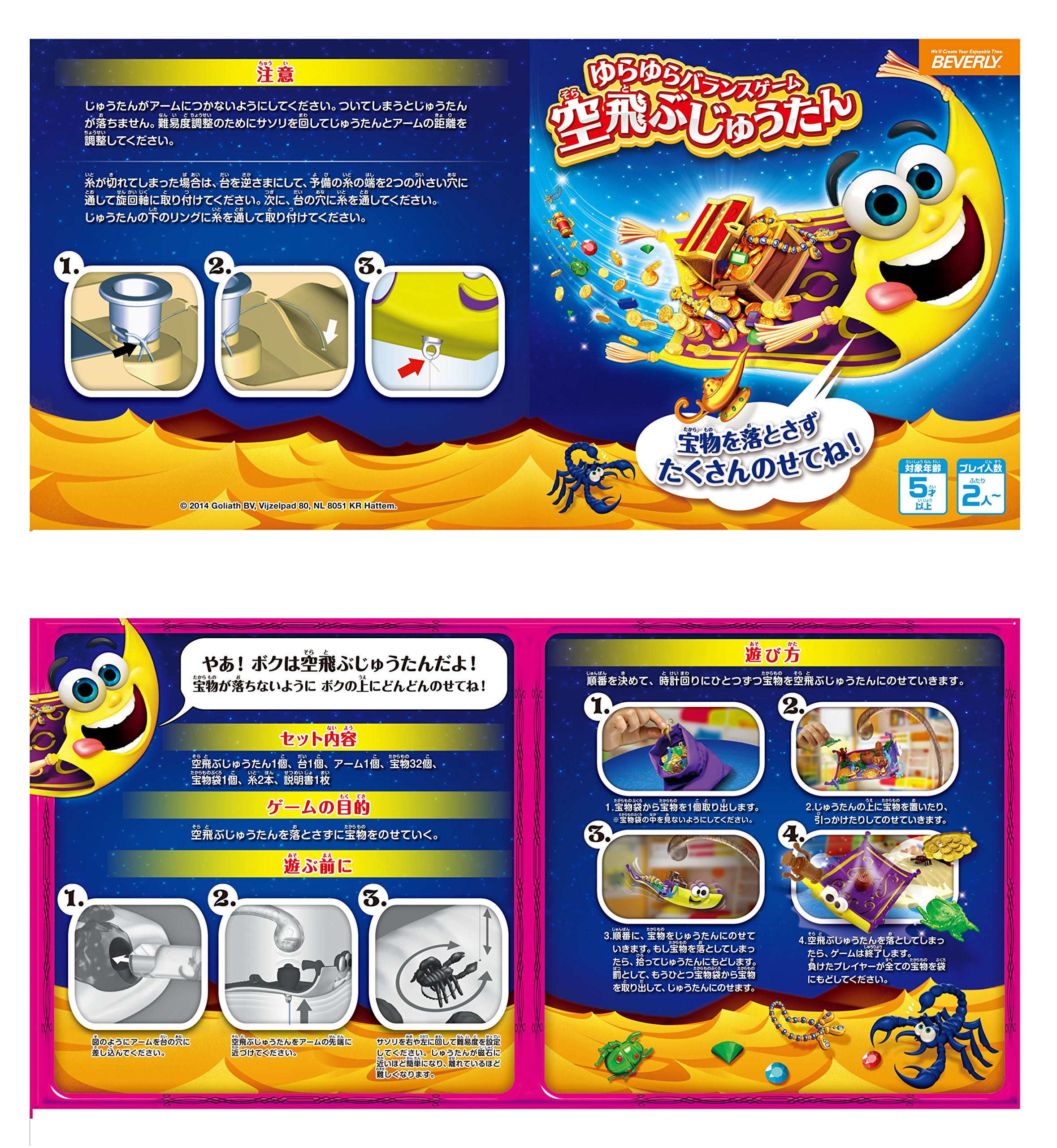 1 carpet flying, 1 base, 1 arm, 32 treasures, 1 treasure bag, 2 threads, 1 instruction sheet