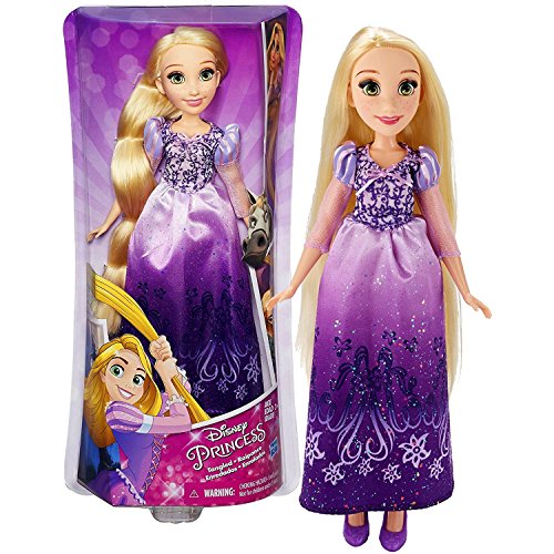 -. Binding : Toy -. Brand : Disney Princess -. EAN : 0645416434225 -. Feature : Includes: RAPUNZEL doll / Rapunzel doll measured approximately 12 inch tall / Produced in year 2015 / For age 3 and up -. IsAdultProduct : 0 -. Label : Hasbro -. Manufacturer : Hasbro -. ProductGroup : Toy -. ProductTypeName : TOYS_AND_GAMES -. Publisher : Hasbro -. Studio : Hasbro -. Title : Hasbro Year 2015 Disney Princess Royal Shimmer Series 12 Inch Doll Set - RAPUNZEL -. UPC : 645416434225