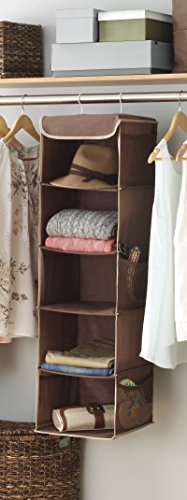 - This hanging organizer has 5 easy access shelves to hold clothing, shoes, scarves or accessories