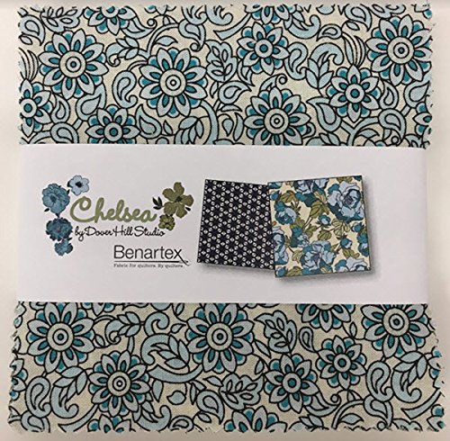 Benartex Chelsea Collection by Dover Hill Studio (5" X 5" Square) Precut 5-inch Charm Pack Cotton Fabric Quilting Squares Assortment