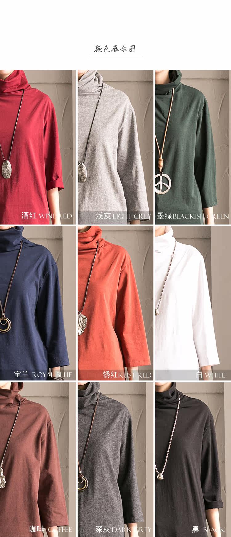 黑,白,浅灰,宝兰,咖啡,墨绿,锈红,深灰,酒红