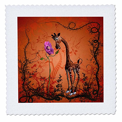 3dRose Funny Giraffe Speak with a Flower Quilt Square, 6 x 6"