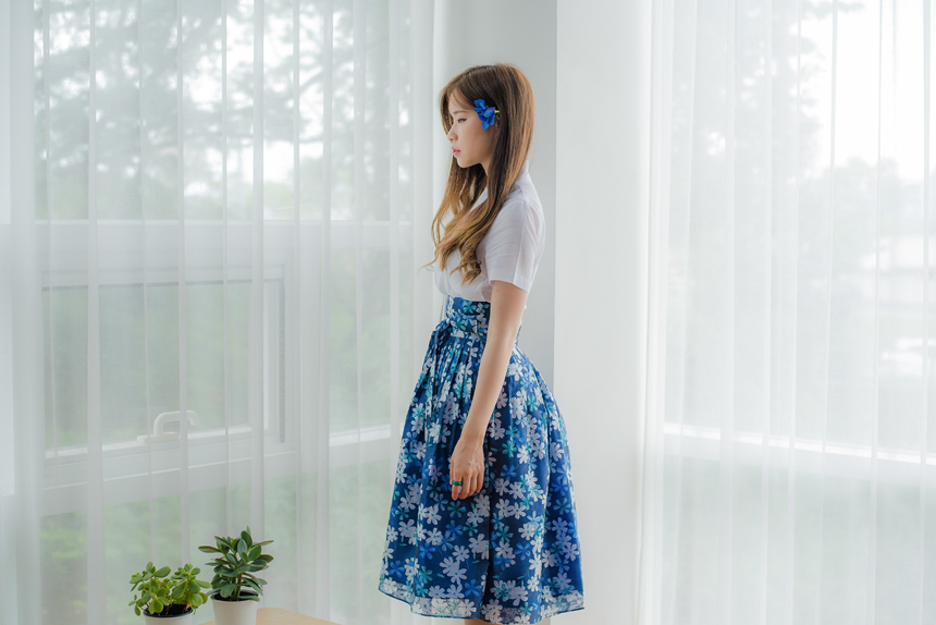 원단 자체에 힘이 있어 속치마를 입지않아도 꽃봉오리처럼 봉긋하게 예쁜 치마핏이 나와요.