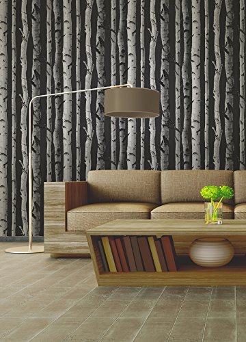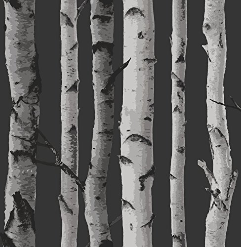Fine Decor 2900-31052 Distinctive Birch Tree Wallpaper, Black
