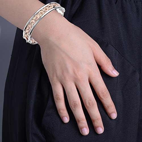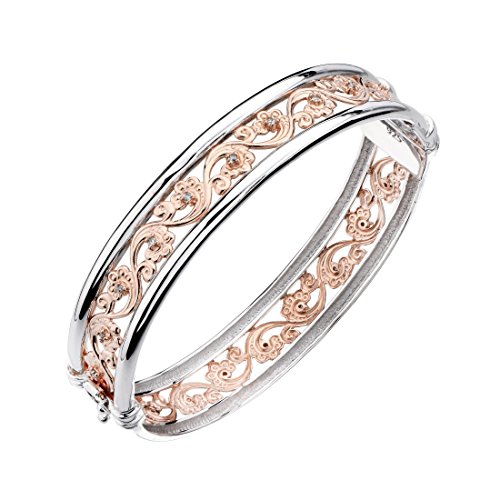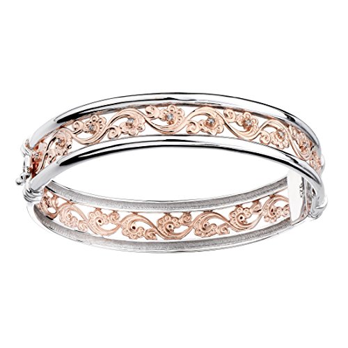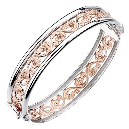 Rose Gold And Sterling Silver Diamond Bangle (1/5 CT) Swirl Style. The Diamonds are Natural (No Color or Clarity Enhancement). The minimum total diamond carat weight is 0.17 CT. This product comes with a 90 day seller warranty.Feature