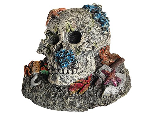 -. Title : Skull with Padlock Axe Coral Aquarium fish Tank Ornament Decoration 16.5cm