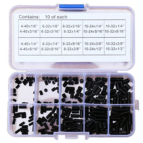 [Product Information]- 200Pcs 4-40 6-32 8-32 10-24 10-32 Set Allen Head Hex Socket Screws Bolts Assortment Kit