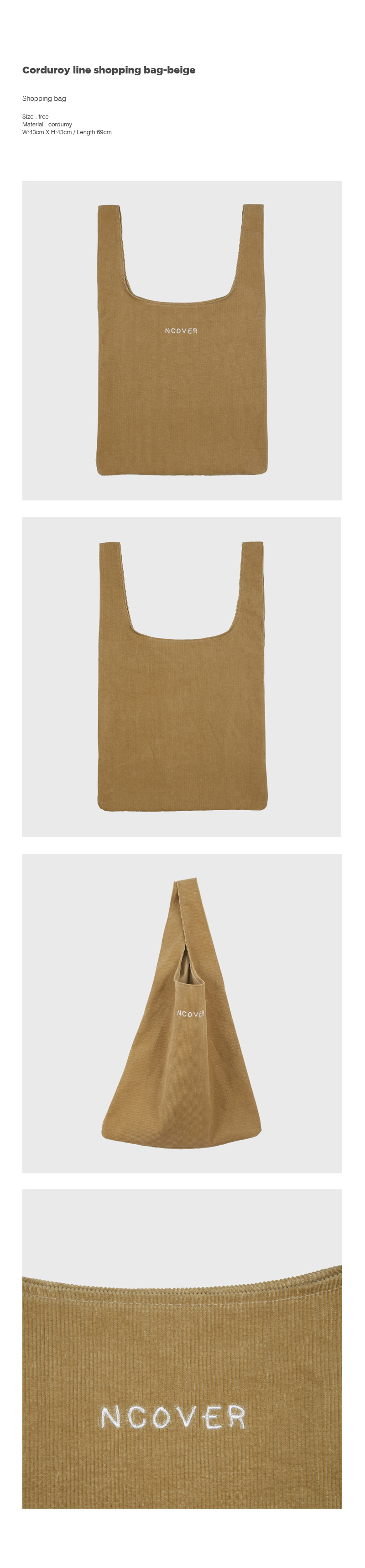 Corduroy line shopping bag-beige