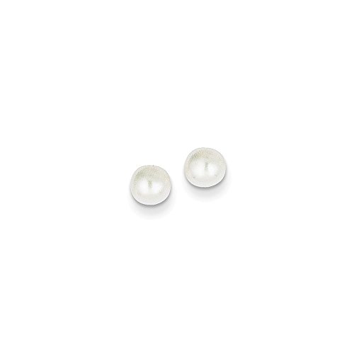 Solid 14k Yellow Gold 5-6mm White Button FW Cultured Pearl Stud Earrings