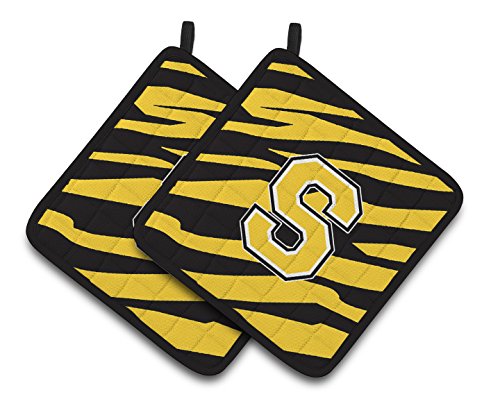 Caroline's Treasures Monogram Initial S Tiger Stripe - black Gold Pair of Pot Holders CJ1026-SPTHD, 7.5HX7.5W, Multicolor