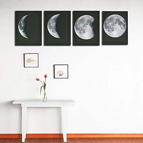 Features: Brand New and high quality Name:Modern Art Oil Painting Theme:Moon Style:Modern/Fashion Material:Canvas Frames:Frameless Quantity:4 pcs Size(approximately ):30*40 cm/11.81*15.75 in Application:decoration for hotel/home/office building/office/cafe/living room/study/bedroom/restaurant/corridor/leisure club,etc Package Included: 4 pcs Modern Art Oil Painting 0