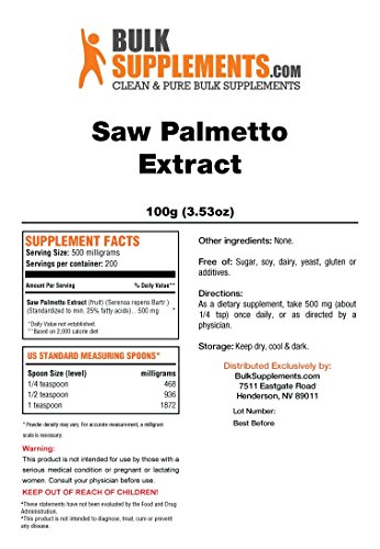 Studio : Bulksupplements Publisher : Bulksupplements Binding : Health and Beauty Product Description Saw palmetto is a palm-like plant that may promote prostate and urinary tract health. Scientists believe saw palmetto's benefits stem from its anti-inflammatory properties, which may also help relieve cold and flu symptoms like sore throat and congestion.This extract is taken from the plant's berries. 0