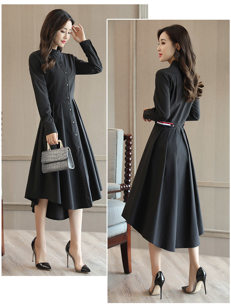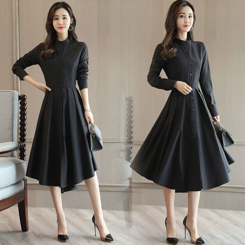 シャツワンピース ワンピ 長袖 シンプル 上品 ひざ下丈 フレア 大人かわいい