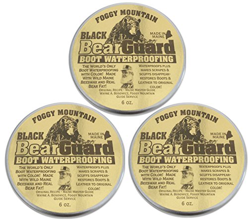 -. Feature : An old trapper's recipe of wild Maine beeswax and real bear grease. / Lubricates, waterproofs, conditions, and preserves leather without softening it. BearGuard Black also restores color and repairs scuffs and scrapes. / Will not damage glue seams, stitching, laces, uppers, or welts and will maintain flexibility even in freezing temperatures. / Does not interfere with the natural breathability of leather and works great for footwear with waterproof, breathable linings. / Will not clog, weaken, or rot leather, and does not contain silicone or mink oil.