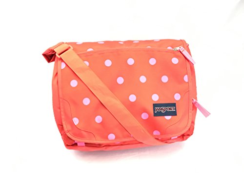 -. Title : JanSport Elefunk-P.R.Inted Laptop Messenger Bag - Fluorescent Pink/Coral Dusk Spots / 13"H x 16"W x 5.5"D