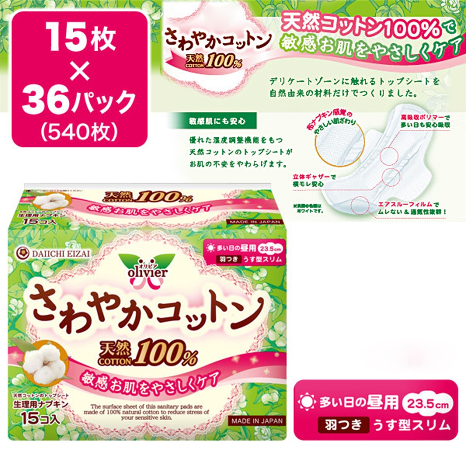 It is a napkin with skin-friendly topsheet, 100% natural cotton.