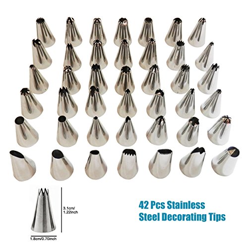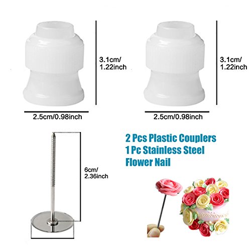 LONG LASTING: Each tip is approximately 1.2 inches long / 0.7 inches wide, suitable for intricate work. Easy to clean and dishwasher safe. Silicone pastry bags and plastic couplers both are reusable, and the special loop of bags allows hanging for air dry.
