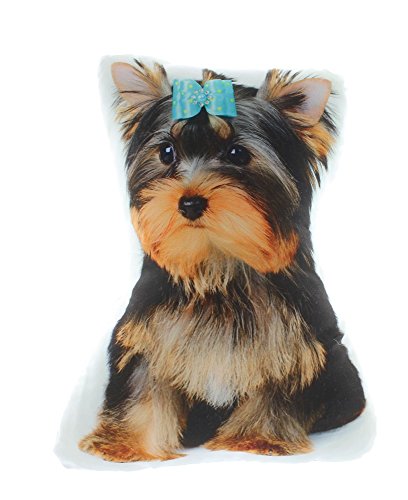 Dog Themed Decorative Accent Pillow, Yorkshire Terrier with Bow Approx 14" x 8"