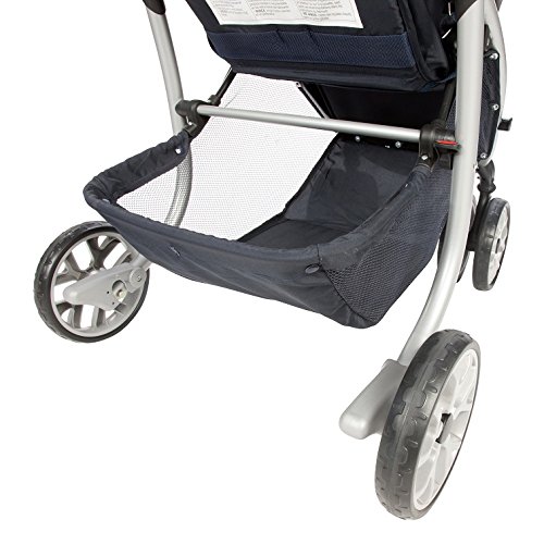 Multi-position seat recline. Child snack tray with cup holder and slideguard protection; Parent organizer tray with 2 cup holders and covered compartment; Oversized basket for all your baby gear
