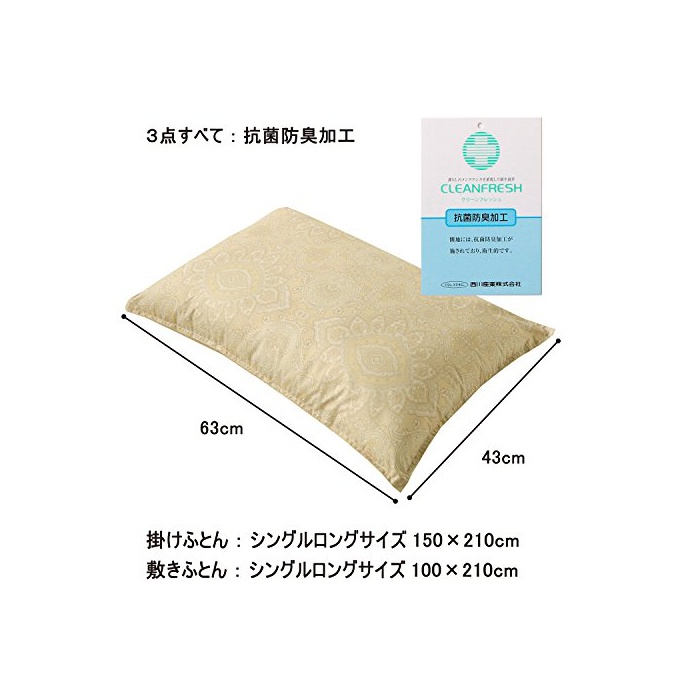 니시카와 산업 도쿄 니시카와 이불 세트 3점 싱글 깃털 들어감 이불 볼륨 요침 항균 방취 베이지 KF07009001BE