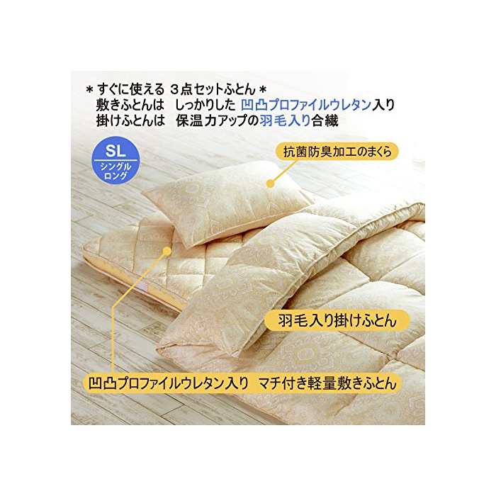 원본상품명: 東京西川 布?セット 3点 シングル 羽毛入り掛け布? ボリュ?ム敷布? 枕 抗菌防臭 ベ?ジュ KF07009001BE