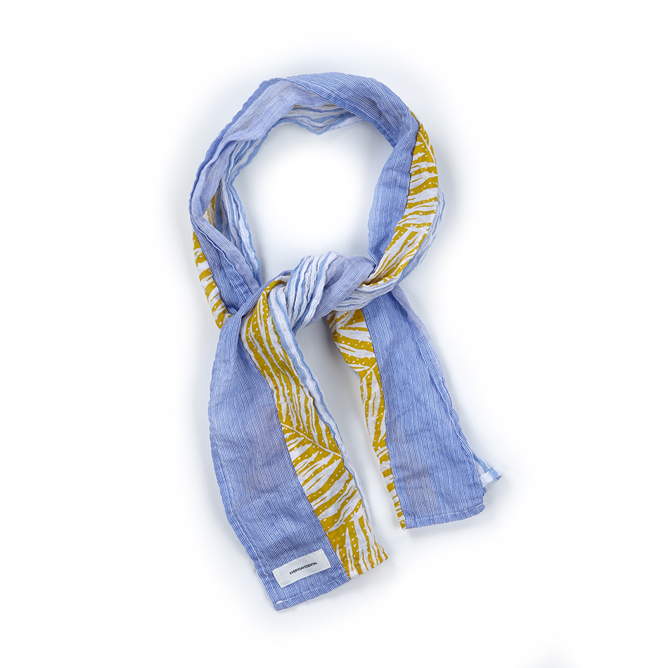 스카이블루 컬러와 엘로우 컬러의 조화로 스타일링을 멋지게 업 시켜줄수 있는 머플러 입니다.